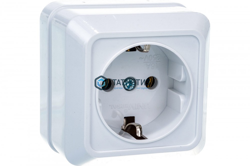 Розетка 1-м ОП Олимп 16А с заземл. IP20 белая UNIVersal