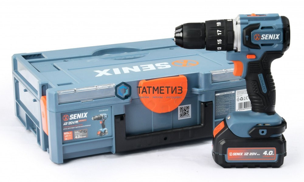 Дрель удар, акк. 20В, бесщет, 60 Нм, 1 акк 4Ач, ЗУ, кейс SENIX X2